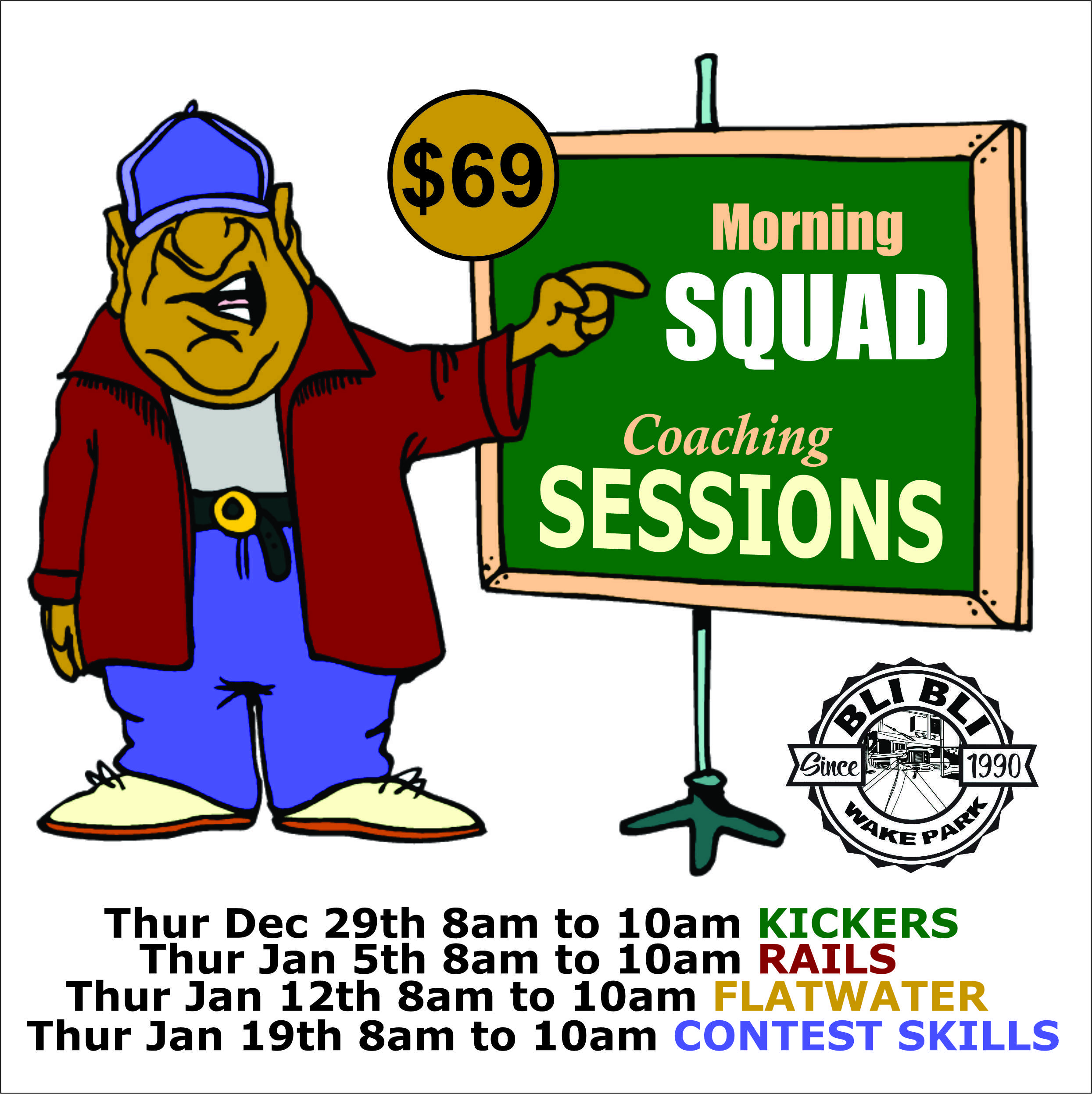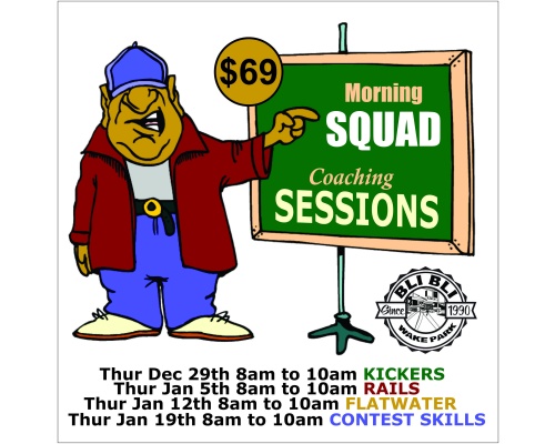 Morning Squad coaching sessions with James Windsor, Ori Bernstein, Joe Battleday and friends. 8am to 10am. Each morning we will concentrate on specific aspects. WEEK 1 Kickers. WEEK 2 Rails. WEEK 3 Flatwater. WEEK 4 Contest Riding….Dont miss out! Spots are limited!! Purchase a session today! Please mark on the check out screen what day/session you wish to attend…..