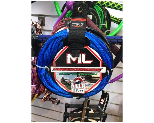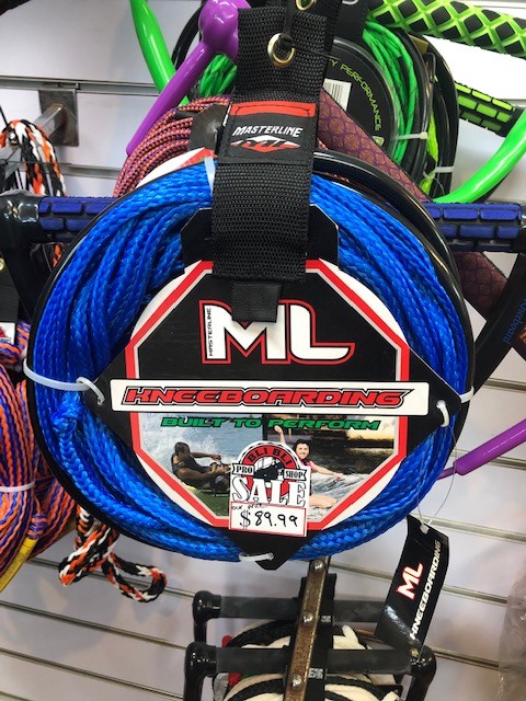 Specialty kneeboard rope with 5 takeoff loops to adjust riding length and cross section handle. Brands and colours may vary