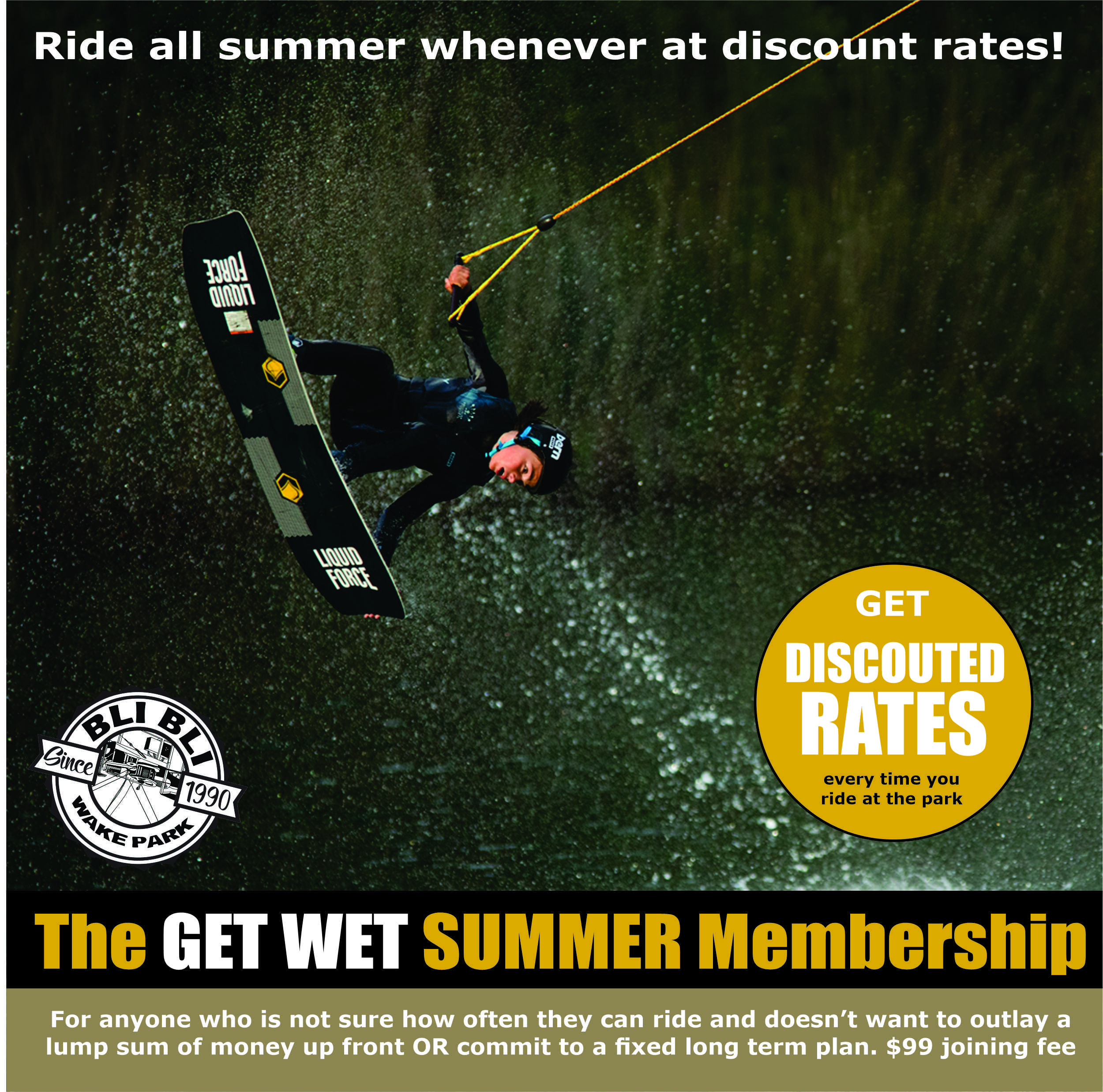 A Get Wet membership gives you a discounted price on every time you come to the cable (from joining date until April 31 each year). With a $99.00 joining, the prices you pay each visit are :